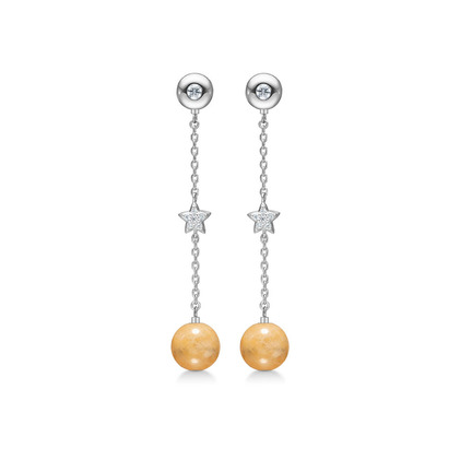 CARNIVAL øreringe i sølv med gul jade og zirkonia sten.