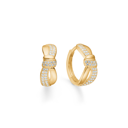 Designer Mads Ziegler forener bløde, organiske former med grafisk geometri og skaber et øreringedesign, hvor en markant knude udgør det kunstneriske midtpunkt. To parallelle rækker af pavé-satte zirkonia forløber på begge sider af creolens midte, hvilket giver et sammenhængende bånd af glimtende lys. Den rolige helhed understreges af helblankpolerede overflader og præcise overgange, der afspejler White Label-kollektionens stræben efter tidssvarende luksus i ægte guld. Hvert element vidner om omhyggelig opmærksomhed på detaljen og eksklusivt dansk design.