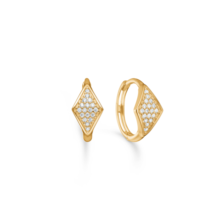 Designer Mads Ziegler har formet Diamond øreringene med inspiration fra marquise-silhuettens bløde indsnævringer og nutidige udtryk. Pavéfeltet med brillantslebne zirkonia reflekterer diskret lyset og fremhæver det slebne gulds glød. Smykket tolker White Label-kollektionens ambition om tilgængelig luksus i ægte 8 karat guld, hvor den omhyggelige stensætning vidner om raffineret dansk guldsmedekvalitet.