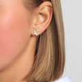 Bær øreringene alene for et rent og tidløst hverdagsudtryk, kombinér dem med et Fleur vedhæng eller ring til de formelle begivenheder, eller lad de pavébesatte diamanter fremhæve ansigtet ved opsat hår til fest. Kurverne matcher stilrent både silkeskjorte eller skræddersyet jakke.