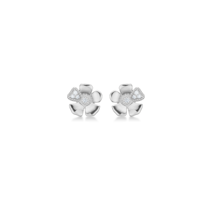 Designer Mads Ziegler lod sig fascinere af skovstorkenæbbets karakteristiske, asymmetrisk formede blade, hvor en let hjertefacon skaber blide organiske linjer, og omsatte deres bølgende former til Fleur-seriens feminine udtryk. De hvide topaser samler lyset i blomstens centrum og på én bladspids, hvilket giver et nuanceret spil mellem funklende og polerede overflader. Resultatet er et design med balance, hvor skulpturelle former og diskrete kontraster præger helhedsindtrykket.