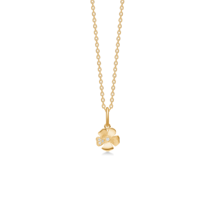 Fleur vedhæng i 14 karat guld med 0.014 carat brillantslebne diamanter W.SI. Vedhænget måler 7 mm.