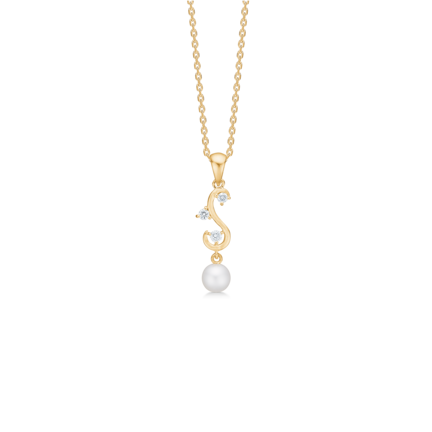 Isaline vedhæng i 14 karat guld med 0,08 ct. brillantslebne diamanter W.SI, hvid kulturperle og måler 17 mm.