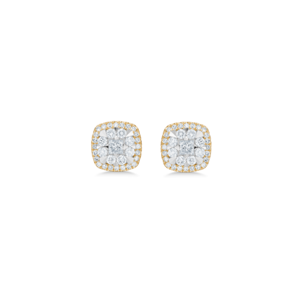 Stellaire øreringe i 14 karat guld med 0,64 ct. brillantslebne diamanter W.SI. Øreringene er designet med balanceret cushion-cluster og mikropavé - måler 9 mm.