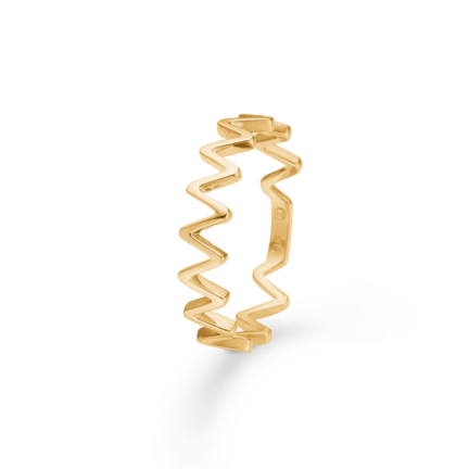 Vianna ring i 14 karat guld, formgivet med karakteristisk zigzag-profil, der følger hele båndet og fremhæver ringens rytmiske udtryk.