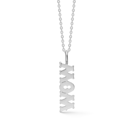 WOW/MOM halskæden i sterlingsølv, er skabt i et grafisk, dobbeltsidet design med ambigram-effekt. Vedhænget måler 21 mm.