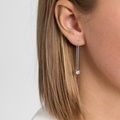 Bær øreringene alene til skjorte og løsthængende hår for daglig glans, eller lad kædetråden følge øret ved opsat frisure. Kombinér med et matchende halskæder og vedhæng for et fuldendt sæt, der understreger et sammenhængende udtryk.