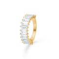 Celestial by Medina ring i 8 karat guld med baguetteslebne hvide topaser i en lineær, arkitektonisk opsætning, inspireret af stjernebilleders geometri.