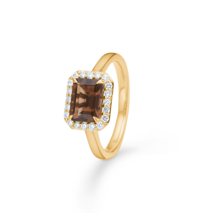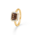 Cognac ring i 14 karat guld med emeraldslebet røgkvarts og 0,25 ct. brillanter W.SI.