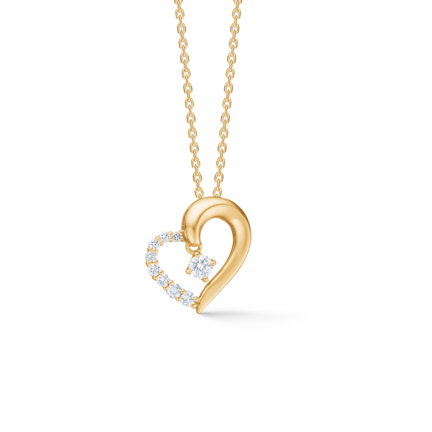 Designer Mads Ziegler har formgivet Crown Heart vedhænget ud fra øjeblikket, hvor kærligheden løftes og gives ny styrke. Den skulpturelle silhuet forener dynamiske kurver, hvor den ene side fremstår poleret i guld og den anden side er belagt med brillantpavé og en centralt placeret diamant for et levende lysspil. Håndsatte diamanter i præcis grabbefatning understreger detaljegraden. Som del af Crown-serien kan vedhænget inden for to år opgraderes til en større diamant – en betænksom gestus til morgengaven eller fejringer med varig værdi.