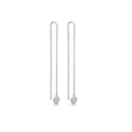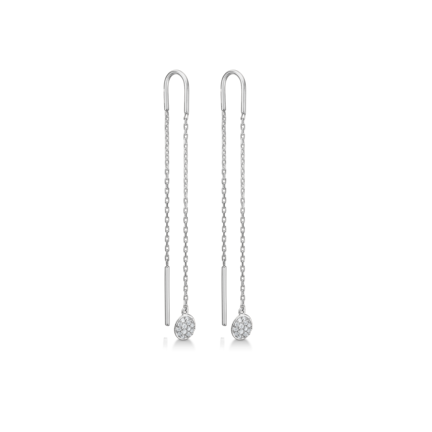 Dome øreringe i højglanspoleret sterlingsølv med pavésatte hvide topaser og artikuleret kædeophæng, længde 26 mm.