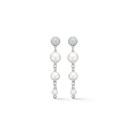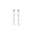 Dome øreringe i sterlingsølv med kulturperler og hvide topaser, længde 35 mm.