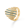 Skylight ring i 14 karat guld med facetterede blå og klare topaser, arrangeret for et raffineret farvespil over parallelle bånd.