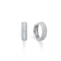 Lunette øreringe i rhodineret sterlingsølv med pavé-satte hvide topaser måler 11 mm og forener nordisk elegance, eksklusivt håndværk og moderne creol-design.