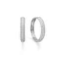 Lunette øreringe i rhodineret sterlingsølv med pavé-satte hvide topaser måler 18 mm og forener nordisk elegance, eksklusivt håndværk og moderne creol-design.