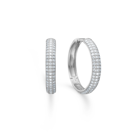 Designer Mads Ziegler fortolker med Lunette dansk designtradition i Silver Label, hvor den klassiske creol opnås gennem rene linjer og blød, afrundet form. Raffineret pavé-fatning og poleret, rhodineret sølv giver et levende spil mellem overflade og sten. Cirklen symboliserer evighed og indre ro – et motiv, der understreger smykkets betydning for den moderne, stilbevidste kvinde og tilfører personlig karakter til både hverdag og særlige øjeblikke.