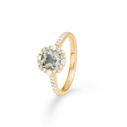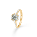 Menthe ring i 14 karat guld med facetsleben grøn ametyst og 0,33 ct. brillanter W.SI.