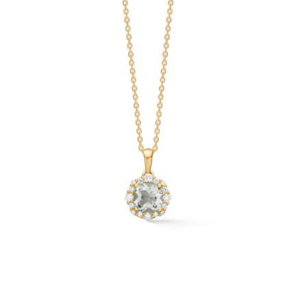 Menthe vedhæng i 14 karat guld med grøn facetsleben ametyst og 0,18 ct. brillanter W.SI. Vedhænget måler 10 mm.