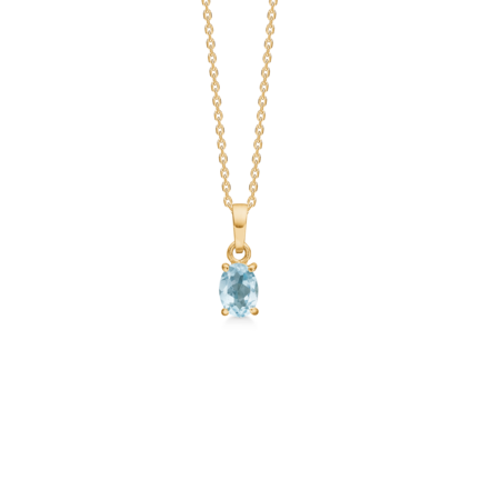 Nia vedhæng i 8 karat guld med facetsleben blå topas – måler 7 mm.