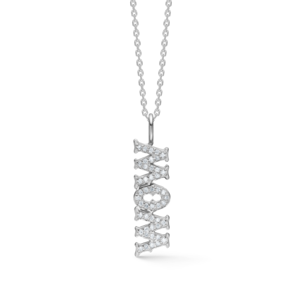 WOW/MOM halskæde i sterlingsølv med brillantslebne hvide topaser. Vedhænget måler 21 mm.